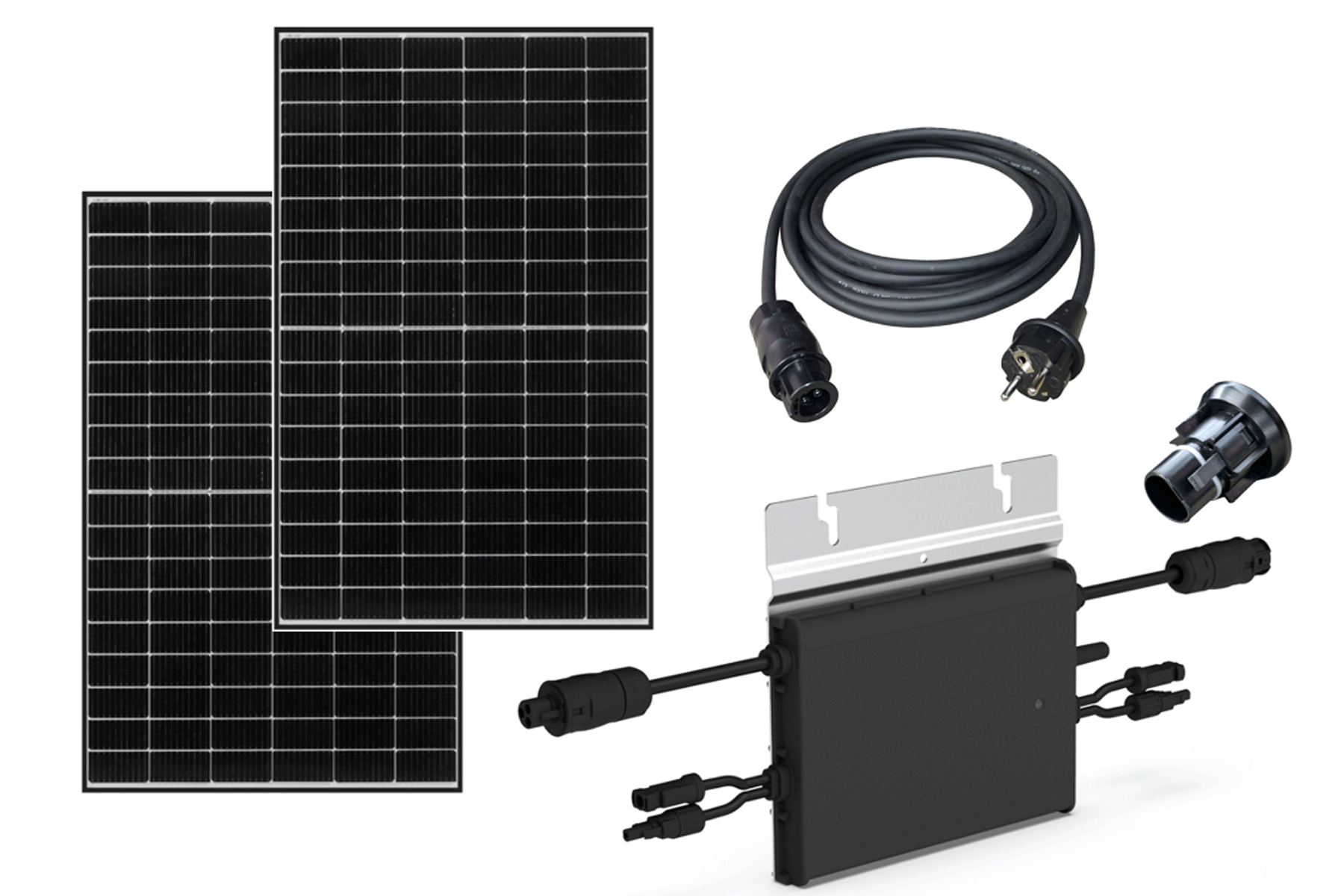 Das kleinste Balkonkraftwerk besteht aus einem PV-Modul, das mit einem Wechselrichter und einem Anschlusskabel ausgestattet ist. Auch größere Systeme mit mehreren Modulen sind durch Verbindungskabel problemlos denkbar.